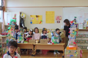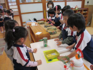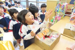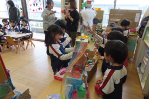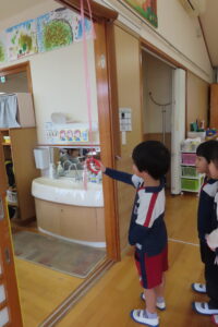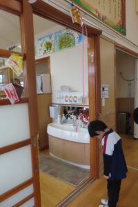 そら組さんのお部屋では『そら組神社⛩️』をこどもたちが準備して、はな組さん・にじ組さんを招待しましたよ。
